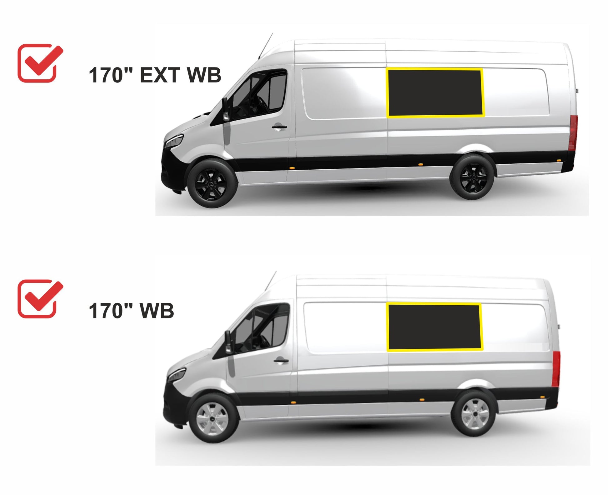 WILL NOT FIT: This window does not fit the 144" Wheelbase Sprinter.,